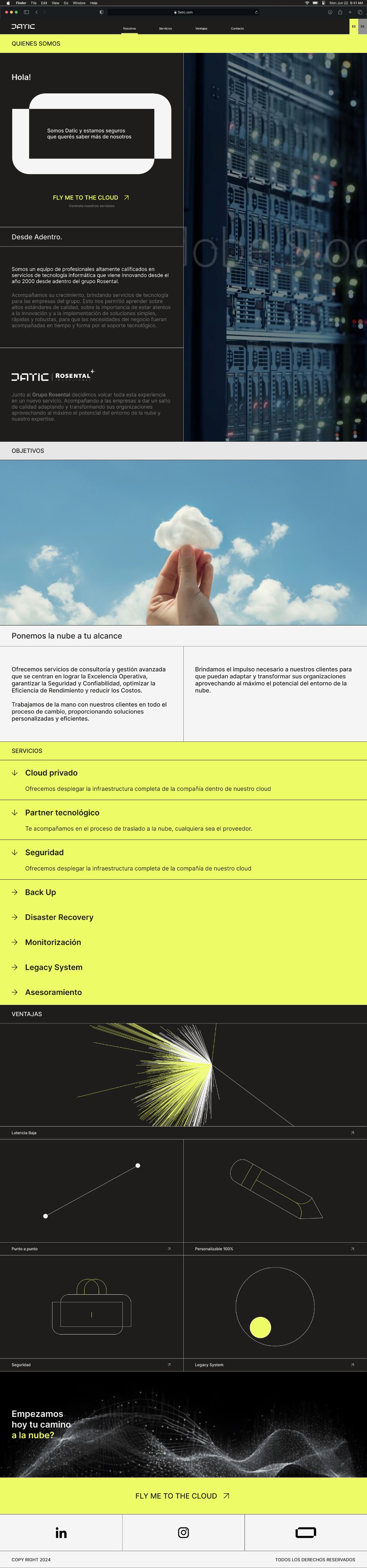 Datic is a startup under the Rosental Group, specialized in cloud consultancy and advanced management. Without a defined identity or digital presence, it needed a landing page that could explain its services, convey technological reliability, and enable direct contact as a first step.